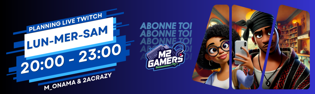 M2 Gamers est une communauté fondée en juillet 2024 par Elsie (Monama) et John (2aCrazy) pour rassembler les passionnés de gaming et de culture geek. Nous proposons un contenu diversifié allant du gameplay aux défis, fails, réactions et humour, le tout dans une ambiance conviviale et immersive.